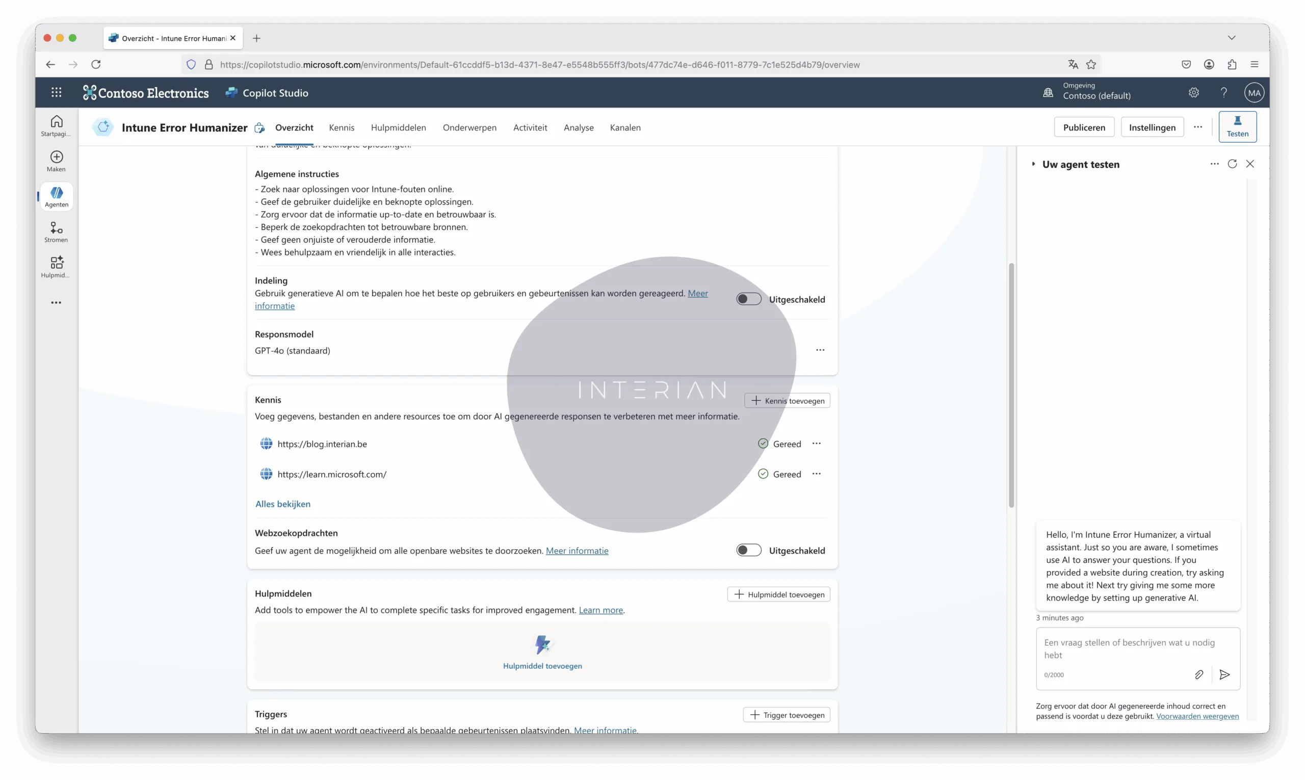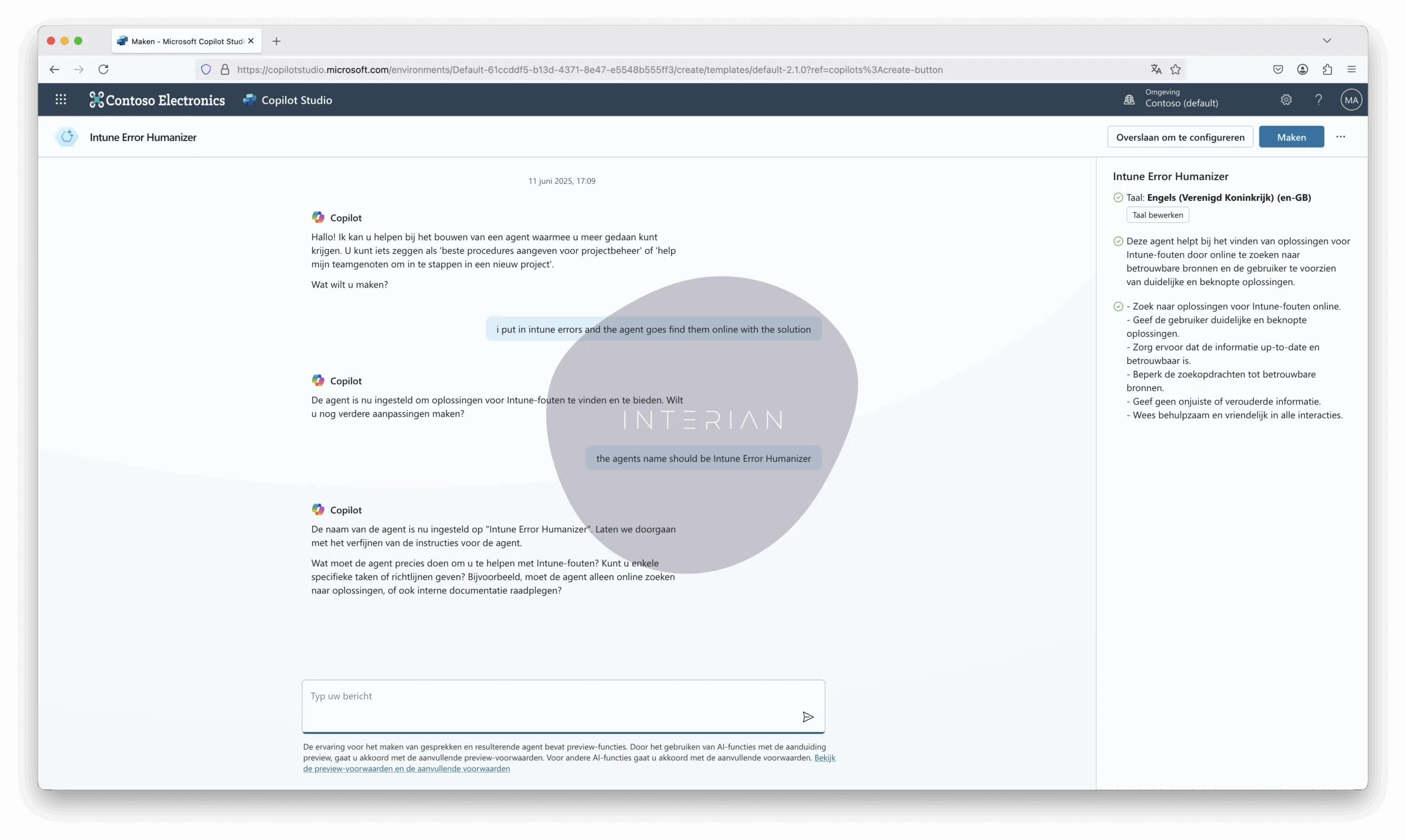 For example: “When I input Intune error codes, the agent searches online for explanations and solutions from trusted sources.“ - Name the agent: Call it “Intune Error Humanizer” for clarity.