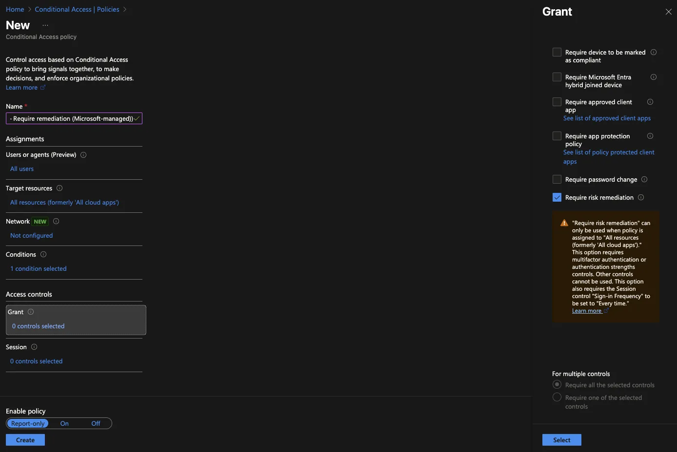 There’s a Conditional Access grant control that most people still aren’t using properly: Require risk remediation (Microsoft-managed remediation).